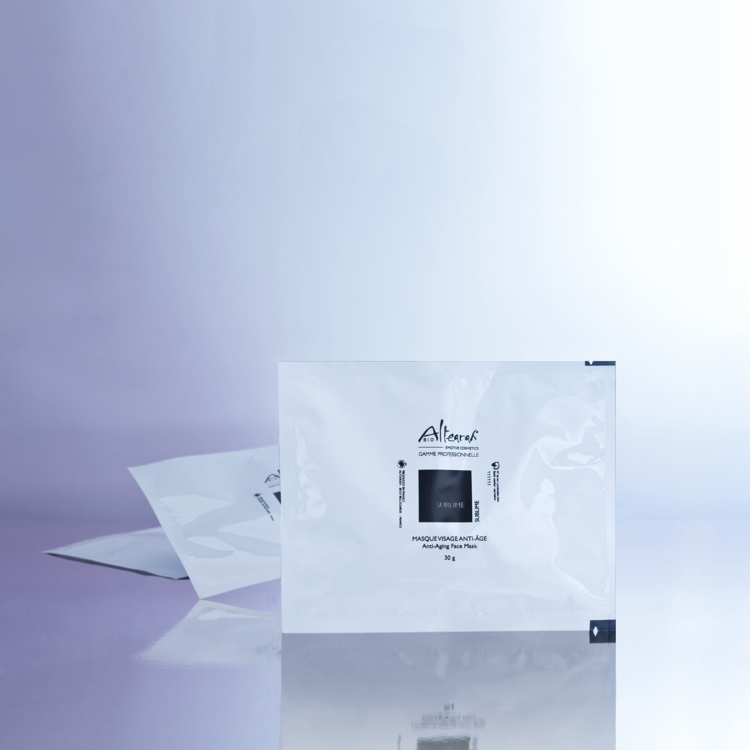 Le masque “Sublime” vendu par boite de 10 pièces unidoses de 30 g. Multi-actions et résultats qui s’adapte aux protocoles. Riche en super-ingrédients: spiruline et curcuma, anti-âge, anti-oxydant et anti-inflammatoire. A personnaliser avec les concentrés de soin.